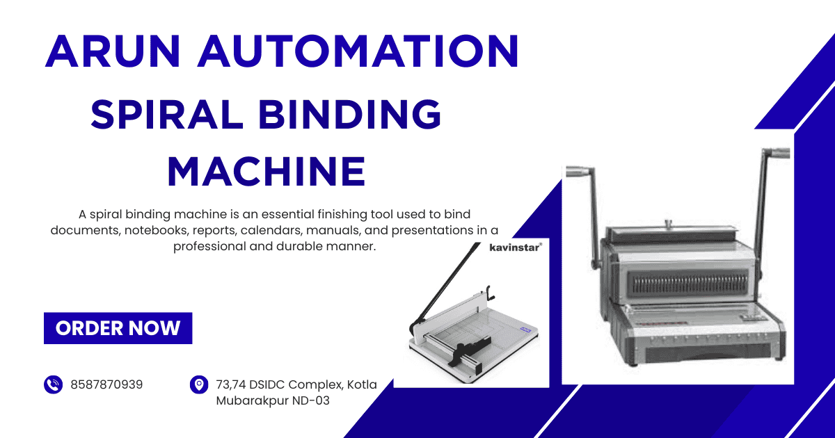 Spiral binding machines are widely used in offices, educational institutions, photocopy shops, printing presses, and corporate houses. From small desktop models to heavy-duty industrial machines, spiral binding machines are available in multiple configurations to suit different workloads.